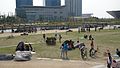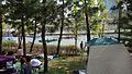 The park has become popular with families in Songdo and Incheon, and draws day-visitors from the Seoul area. The forested area in the park also fills with daytime tents and campers on weekends. A patio on the east side of the park has cafes and small restaurants, and canoes are available for rental. A water-taxi service crosses the lake for transportation and tourism.[7]