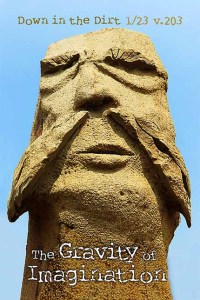 We wanted to let you know that the brand-new Down in the Dirt issue was just released! The new issue of the January 2023 issue of Down in the Dirt is v203, titled “The Gravity of Imagination”!
